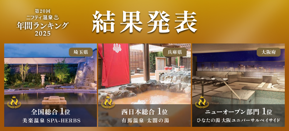 【結果発表】ニフティ温泉年間ランキング2025 全国2.2万施設から選ばれたスーパー銭湯はココ!~ニューオープン部門や、エリア別ランキングも大公開!~